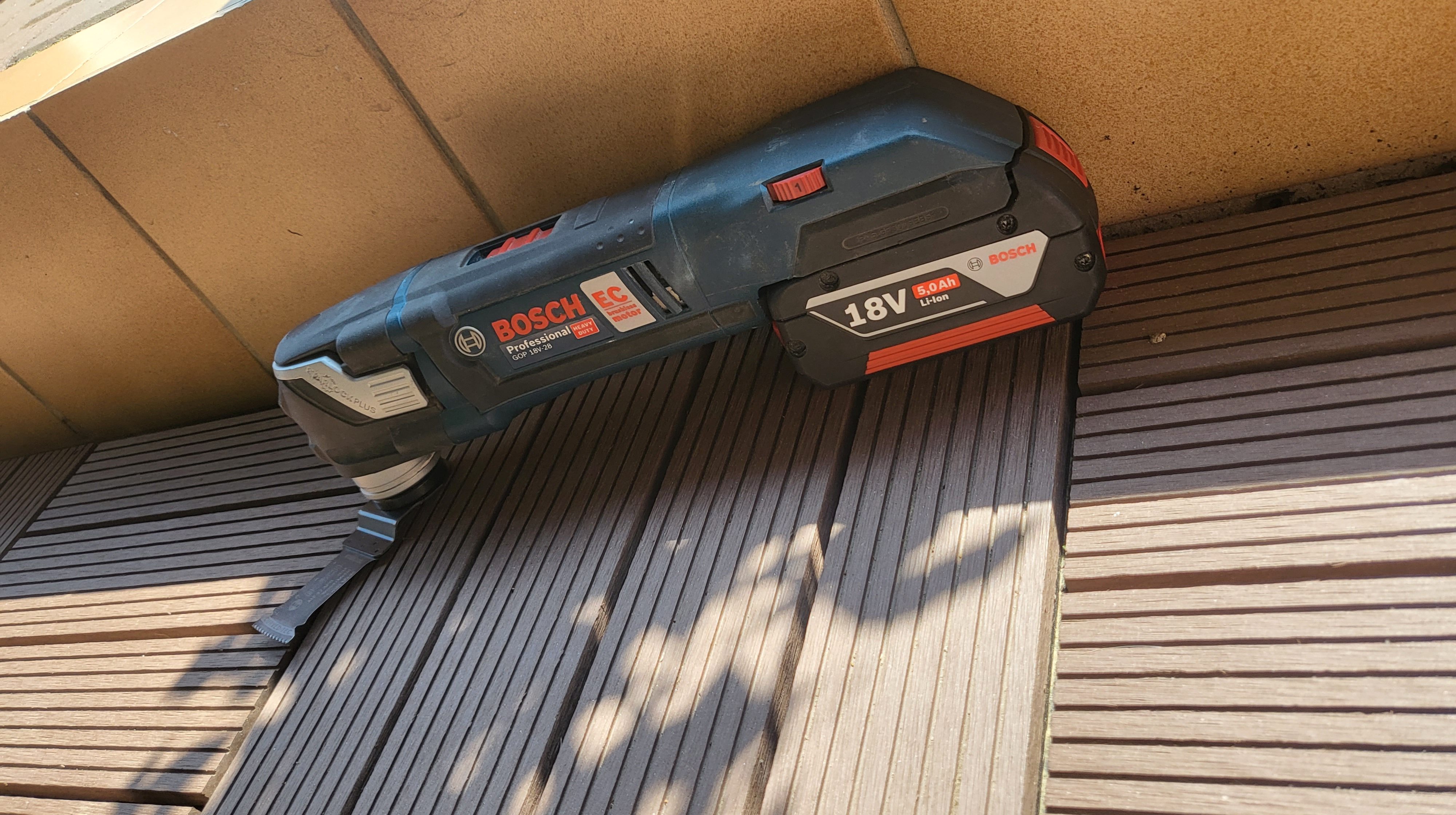 Die Ränder und der Regenwasserabfluss wurden mittels Siebdruckplatten verstärkt. Bei den Rändern bewährte sich die Bosch GOP 18V 28! Durch die flexible Einstellung der verschiedenen Sägeblätter, gibt es kaum Stellen die nicht erreicht werden können.